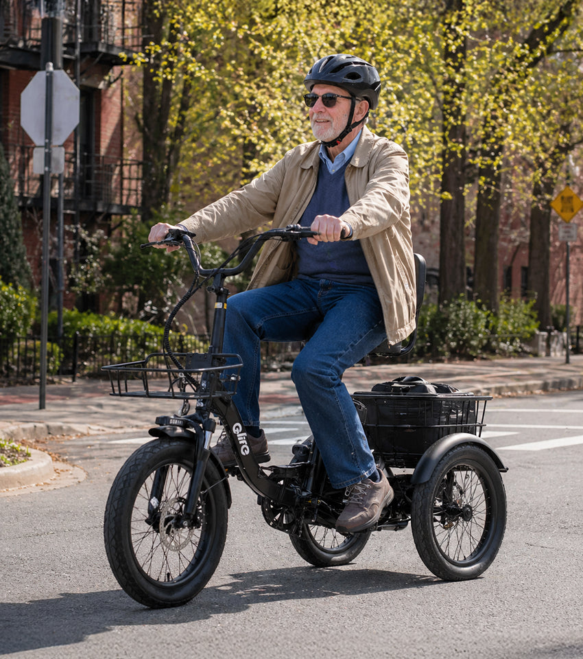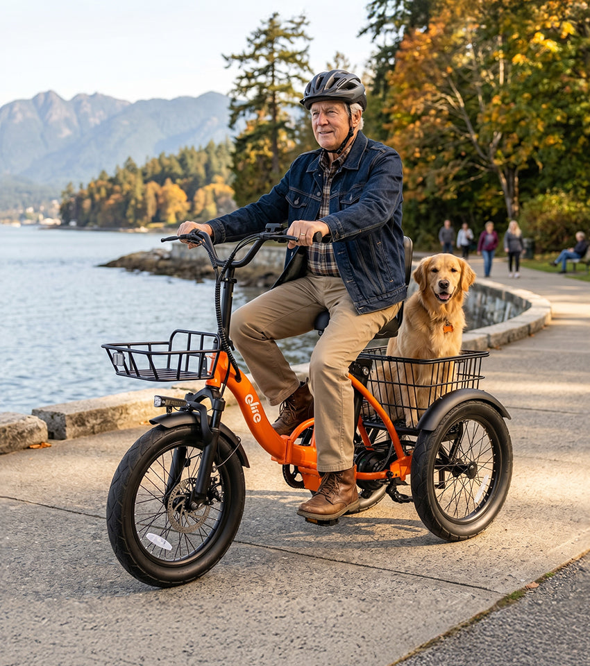 Designed with seniors in mind, our Triker 2.0 features a plush, oversized seat with an adjustable backrest, providing superior comfort and support for long rides. The low step-through frame and stable, extra-wide 18x3.0 tires make mounting and dismounting effortless, while the secure parking brake ensures steady stops every time.