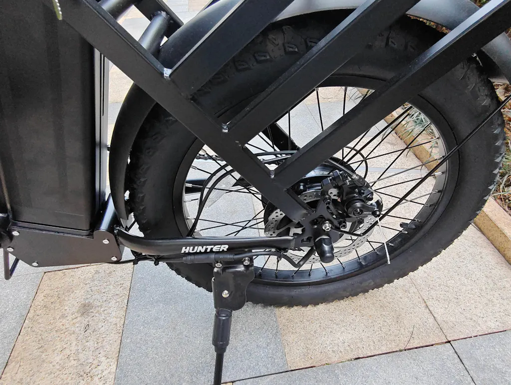 Hunter’s 20×3.0 wide tires provide exceptional stability and traction on city streets, gravel paths, and light off-road trails. Designed to handle heavy loads and varied terrain, these tires work in perfect harmony with the front suspension fork, delivering smooth, controlled, and comfortable rides every time. Whether commuting, delivering, or exploring, Hunter’s tires give you confidence, safety, and reliability with every mile.