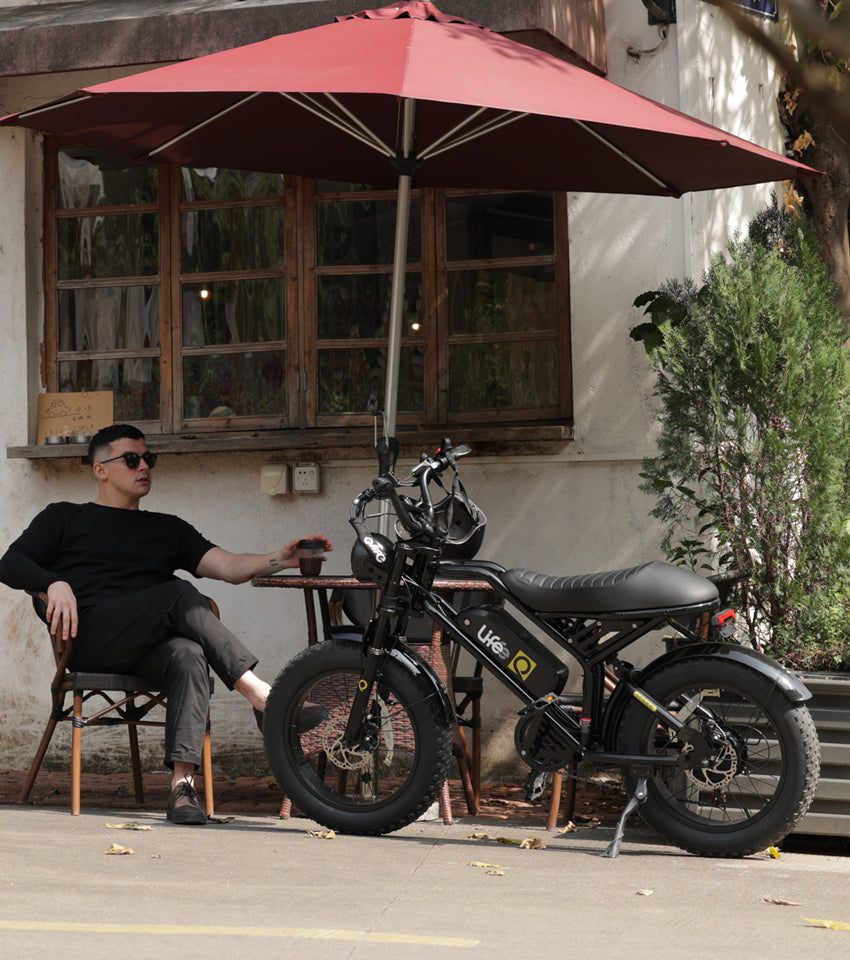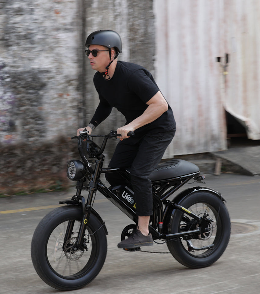 The Spark Motorcycle Electric Bicycle from Qlife, proudly designed in sunny Florida, seamlessly blends cutting-edge style with exceptional value. Featuring a bold, motorcycle-inspired frame and crafted for both students and adults, it’s the perfect ride for city streets and weekend adventures alike. Powered by a robust 1500W peak motor, the Spark offers thrilling acceleration and a top-tier riding experience, while pedal assist helps you cover up to 60 miles on a single charge. Whether you're gliding through urban traffic or exploring off-road trails, the fat 20"x4.0" tires and dual suspension system provide the grip, comfort, and stability you need to ride with confidence. With its sleek design, high performance, and all-terrain capability, the Spark is built for those who crave both freedom and style on two wheels.